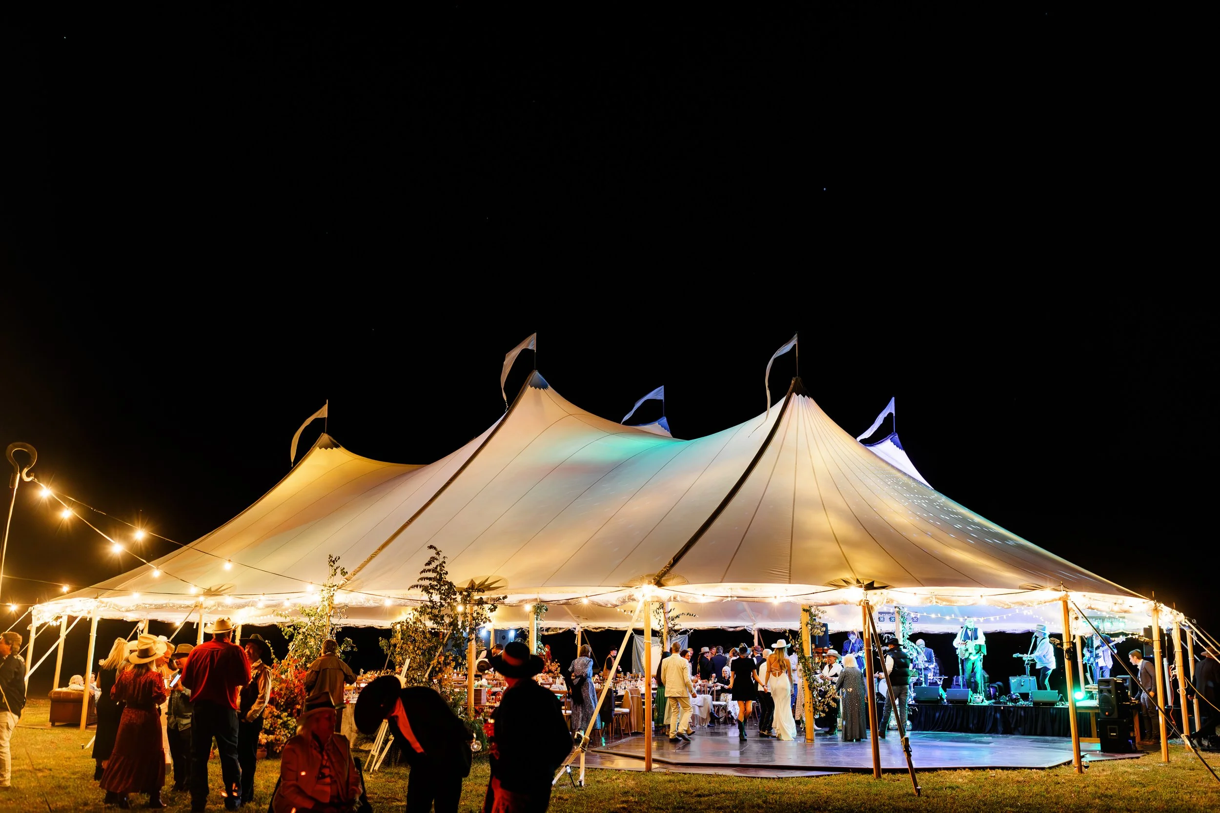 Clear Marquee 15m x 9m, Dance Floor, DJ and Festoon Lights