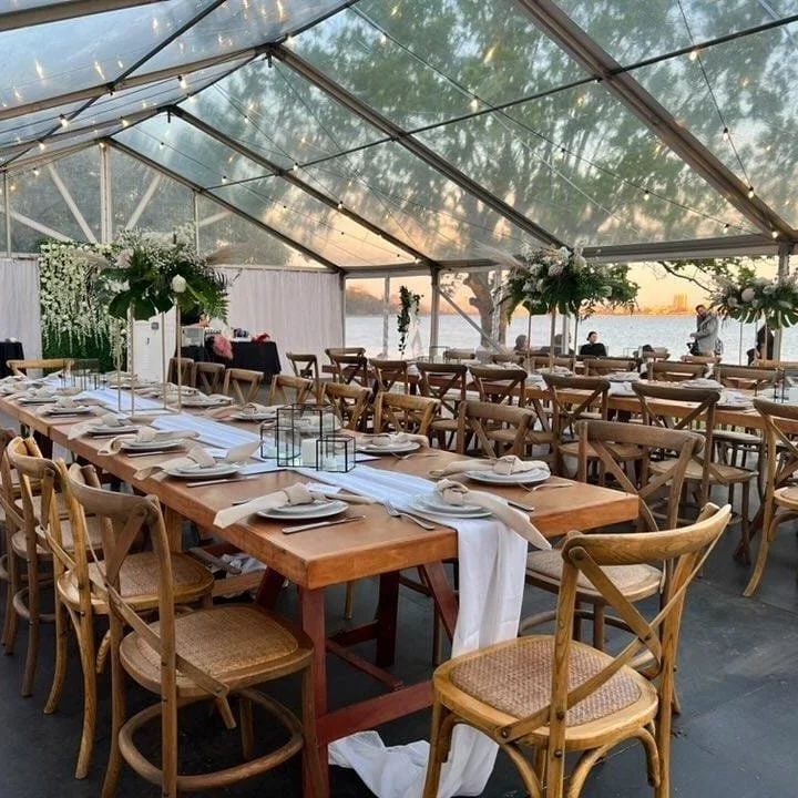 ALL Tables & Crossback Chairs (a choice of wooden banquet or round tables)